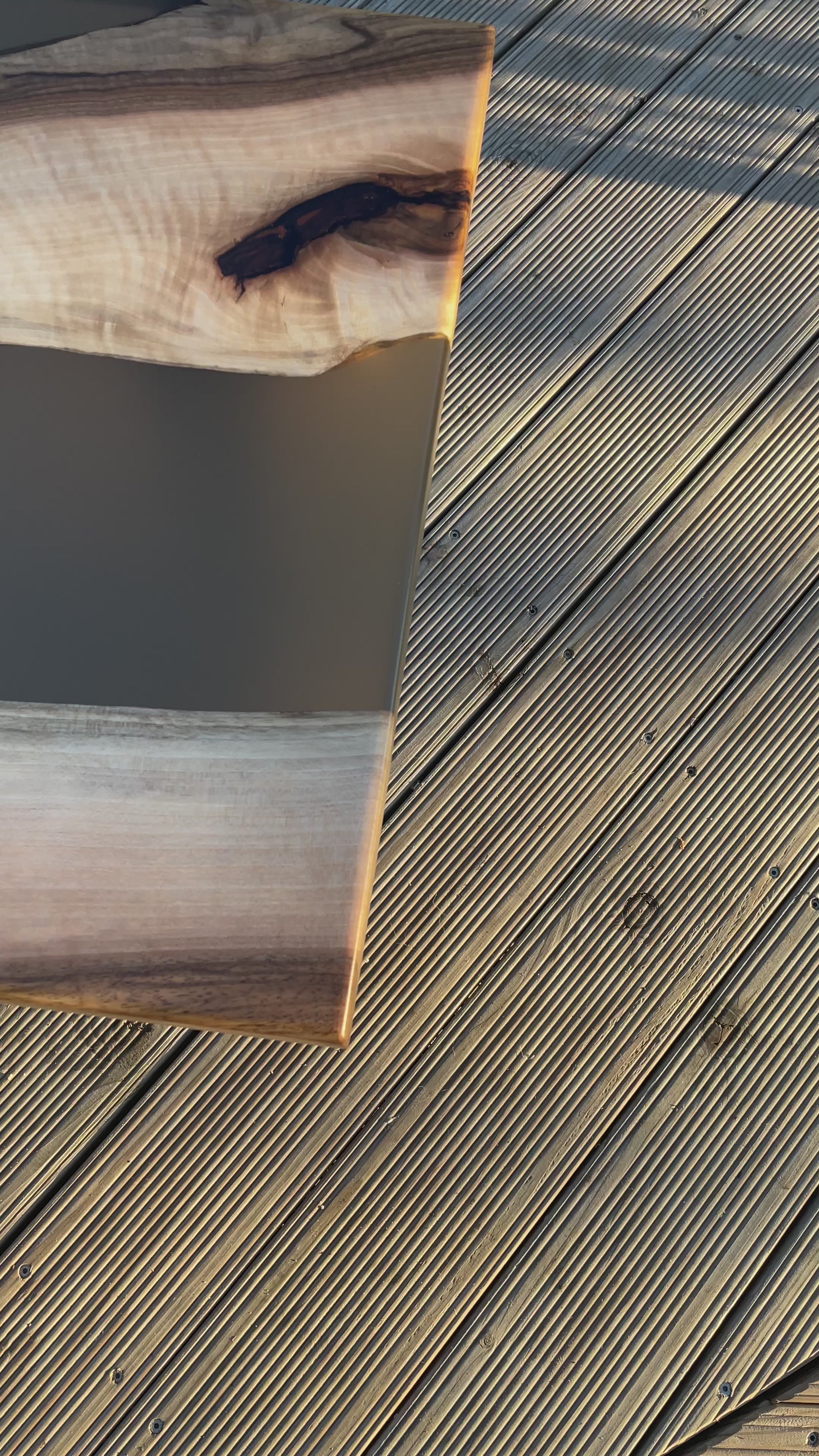 Dieser stilvolle Couchtisch aus edlem Nussbaumholz setzt durch seine einzigartige Kombination aus natürlichen Materialien und modernen Akzenten ein starkes Statement in jedem Raum. Die Tischplatte aus hochwertigem Nussbaumholz überzeugt mit ihrer natürlichen Maserung und einer exklusiven Einlage aus transparentem, schwarz gefärbtem Epoxidharz, die dem Tisch einen faszinierenden, tiefen Glanz verleiht. Das Epoxidharz ist in verschiedenen Farben wählbar, sodass Sie den Tisch ganz nach Ihrem persönlichen Geschmack und Ihrem Raumkonzept anpassen können.