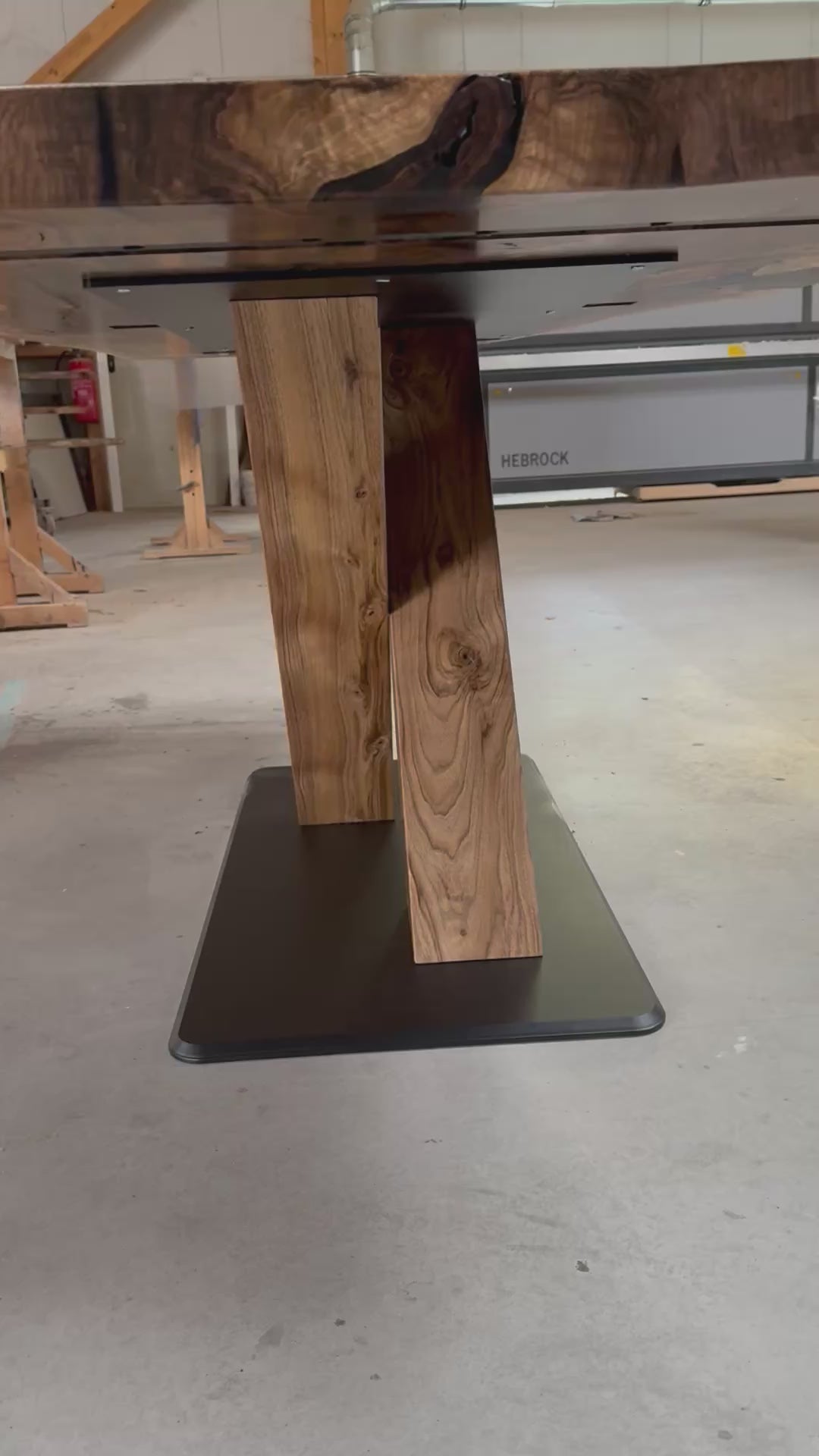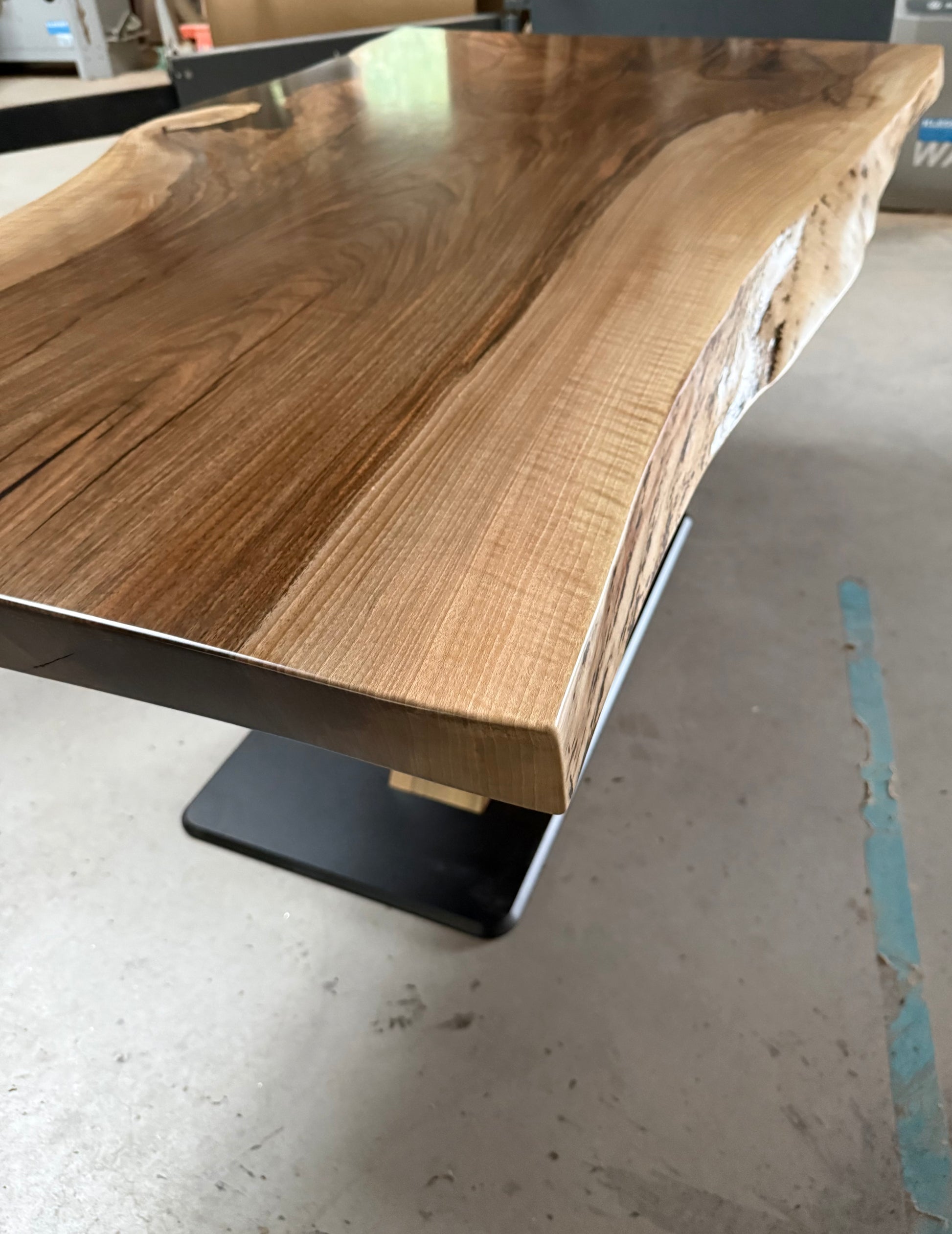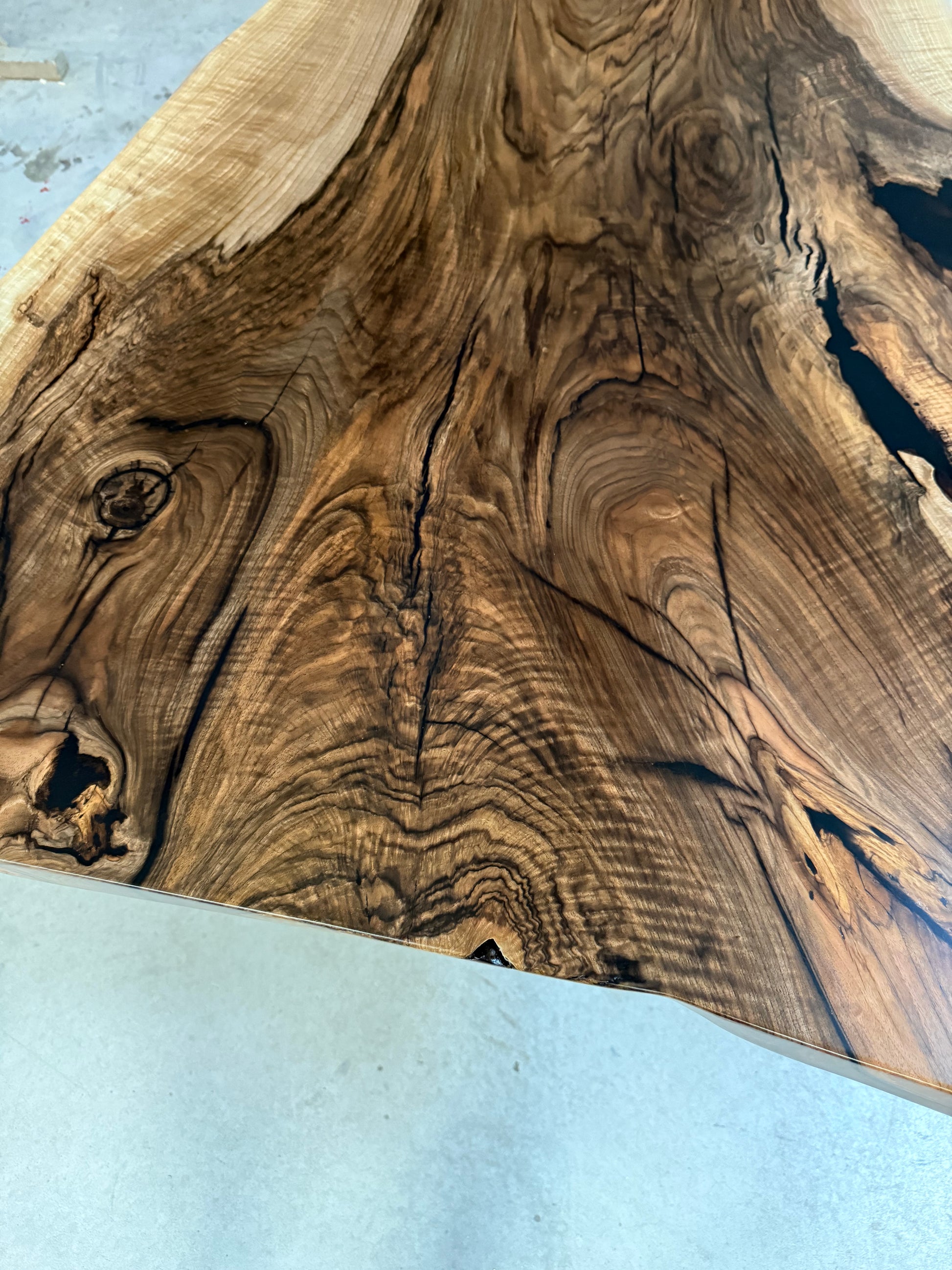 Einzigartige Nussbaumplatte kombiniert mit Tischgestell Nussbaum X Metall