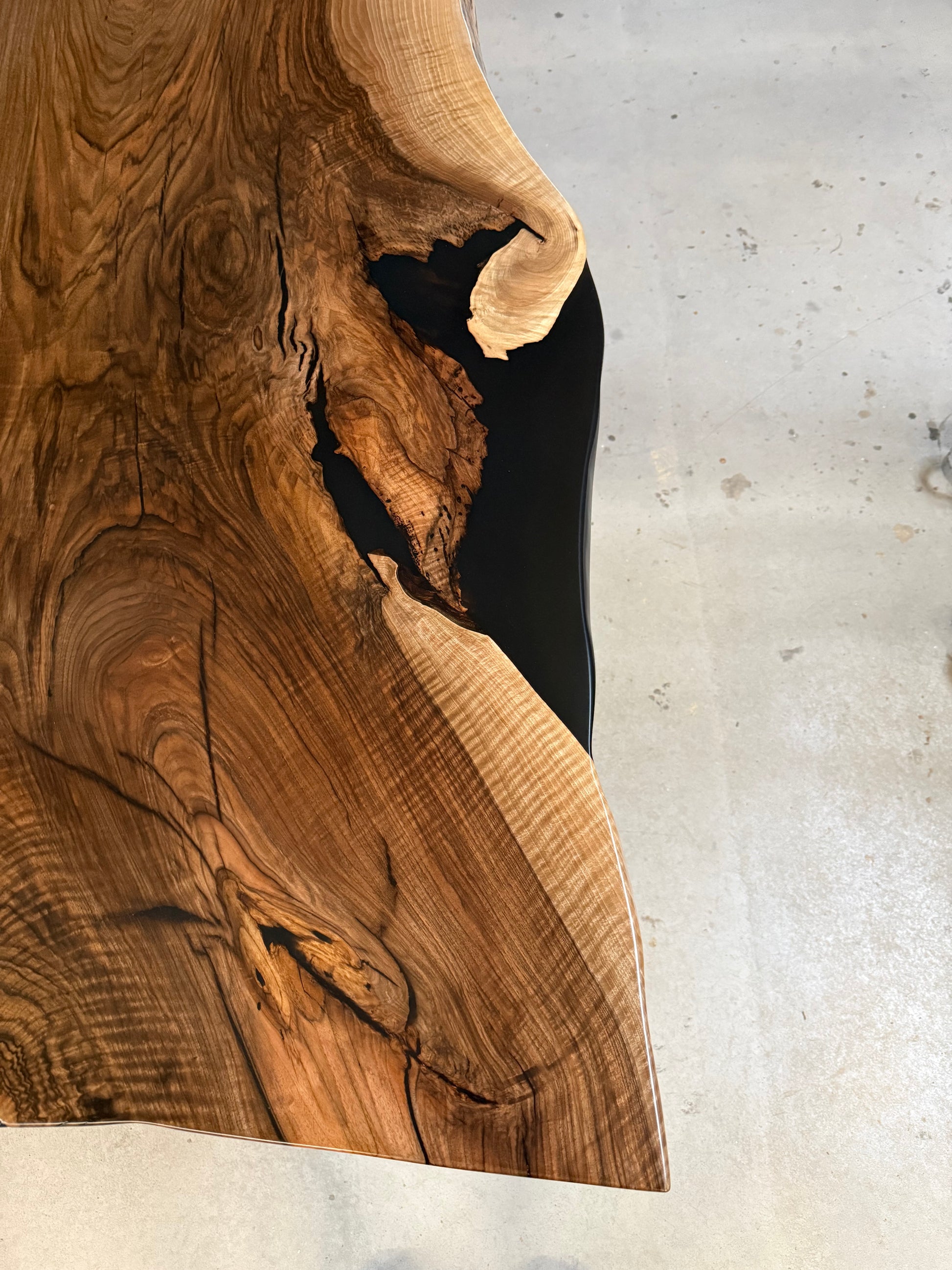 Unsere Tische werden von Anfang bis Ende mit Liebe zum Detail geplant. Beginnend mit der Auswahl des edlen Holzes über die individuelle Farbgestaltung des Epoxidharzes bis hin zum gewünschten Oberflächenfinish – jedes Element wird sorgfältig aufeinander abgestimmt. Abgerundet wird das Design durch die Wahl eines passenden Gestells, das Funktionalität und Ästhetik harmonisch verbindet. So entsteht ein Tisch, der nicht nur optisch beeindruckt, sondern auch im Alltag durch Qualität und Beständigkeit überzeugt.