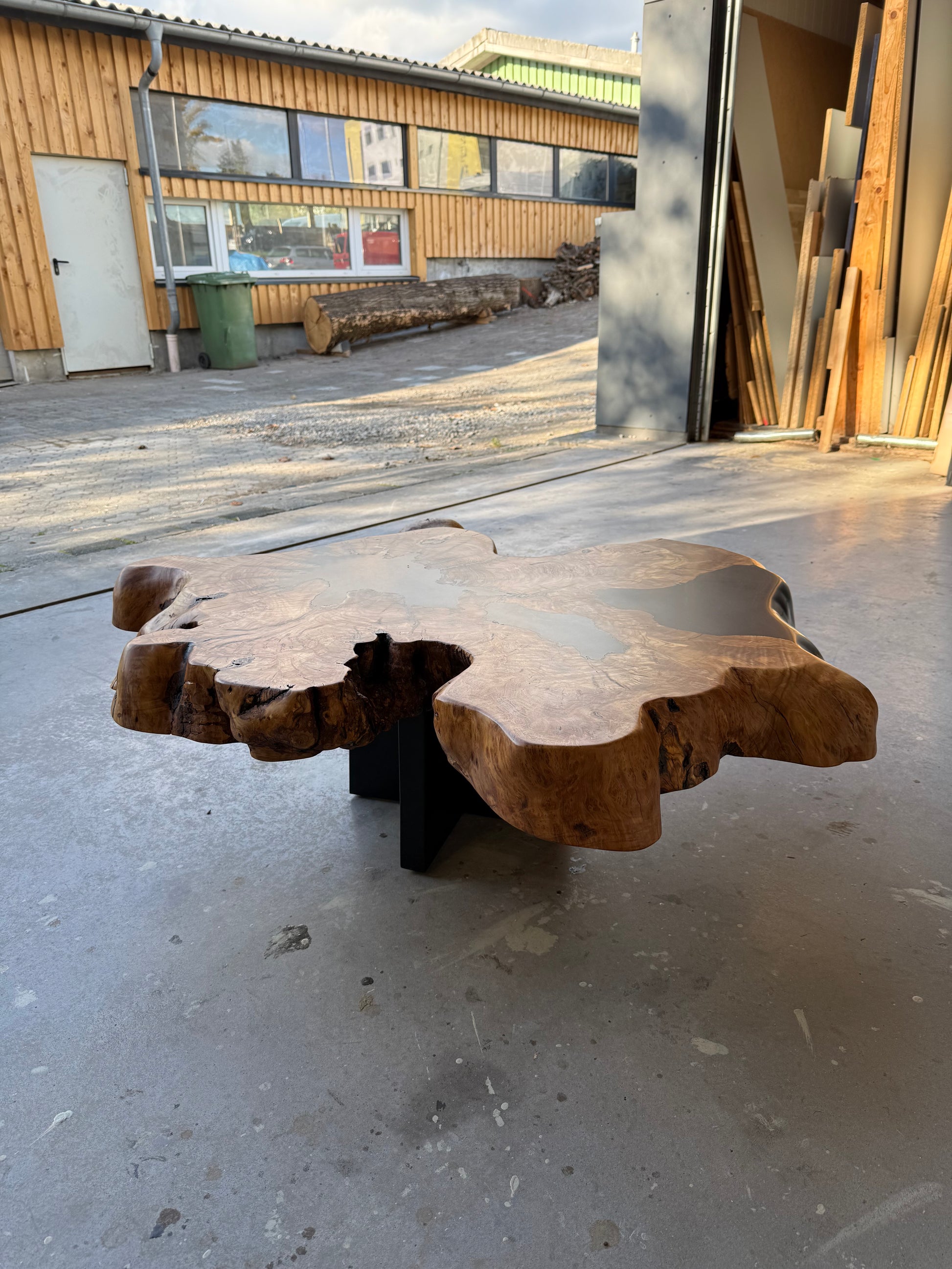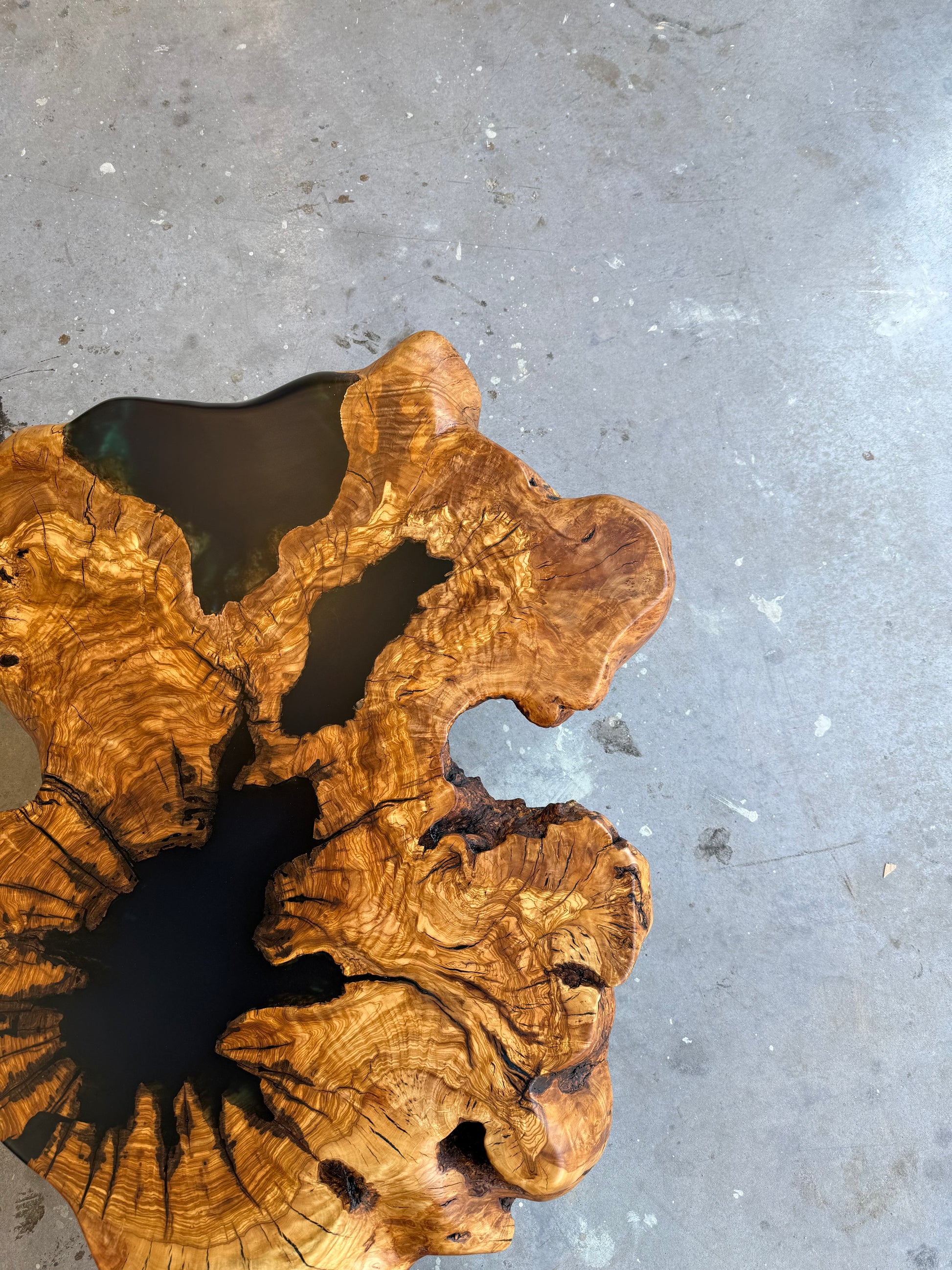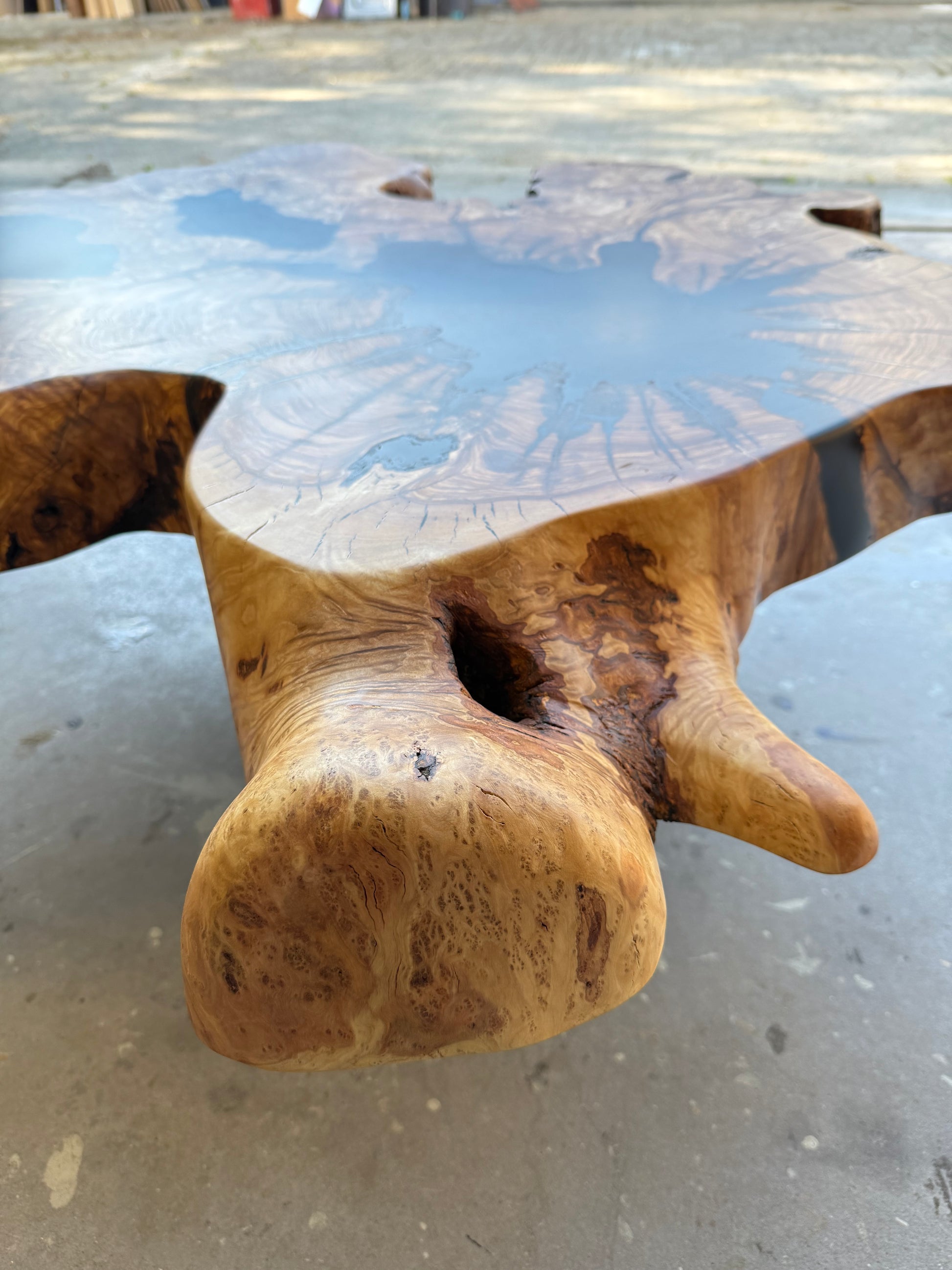 Wurzelholztisch - Olivenholzscheibe kombiniert mit Epoxidharz