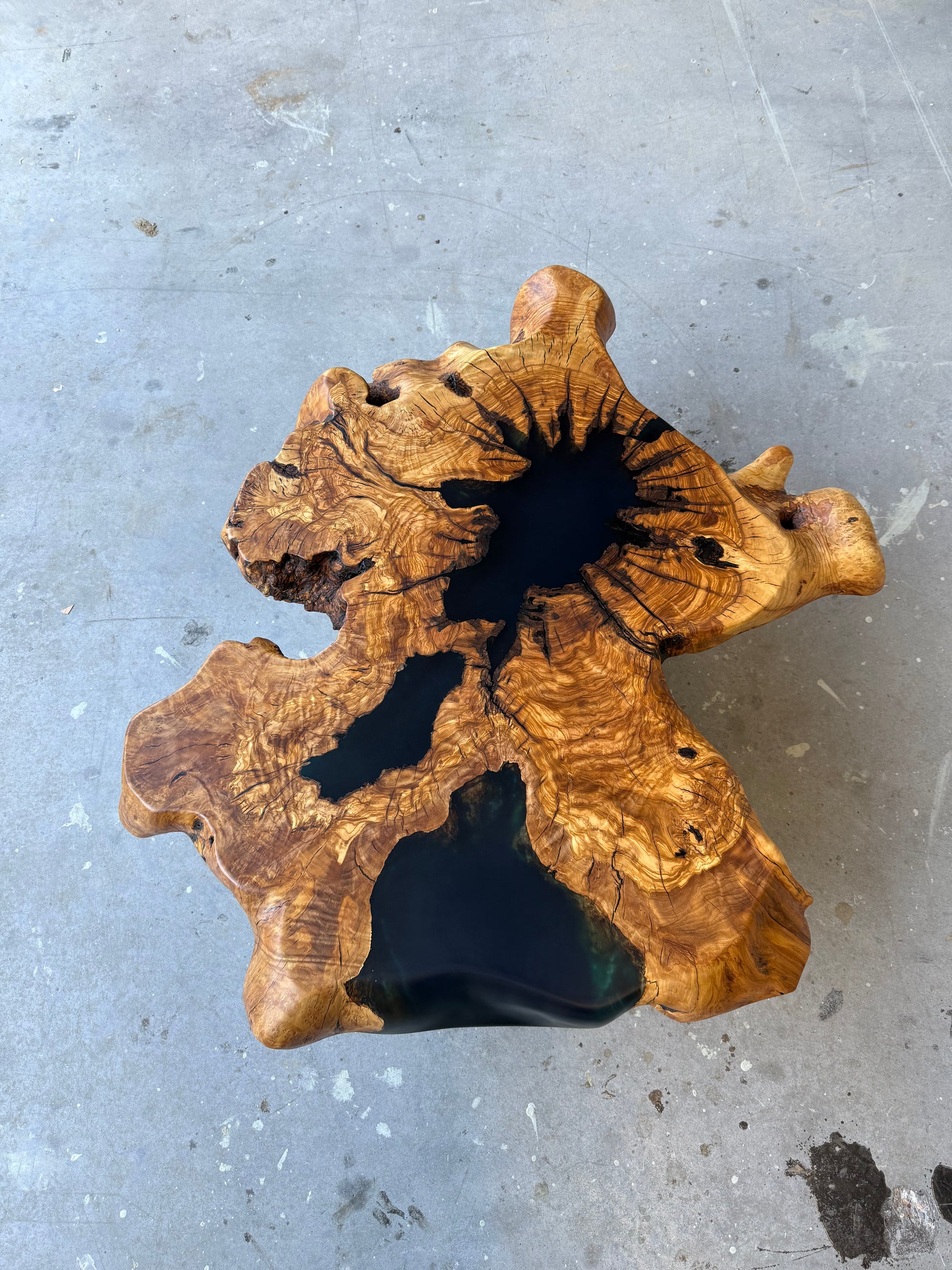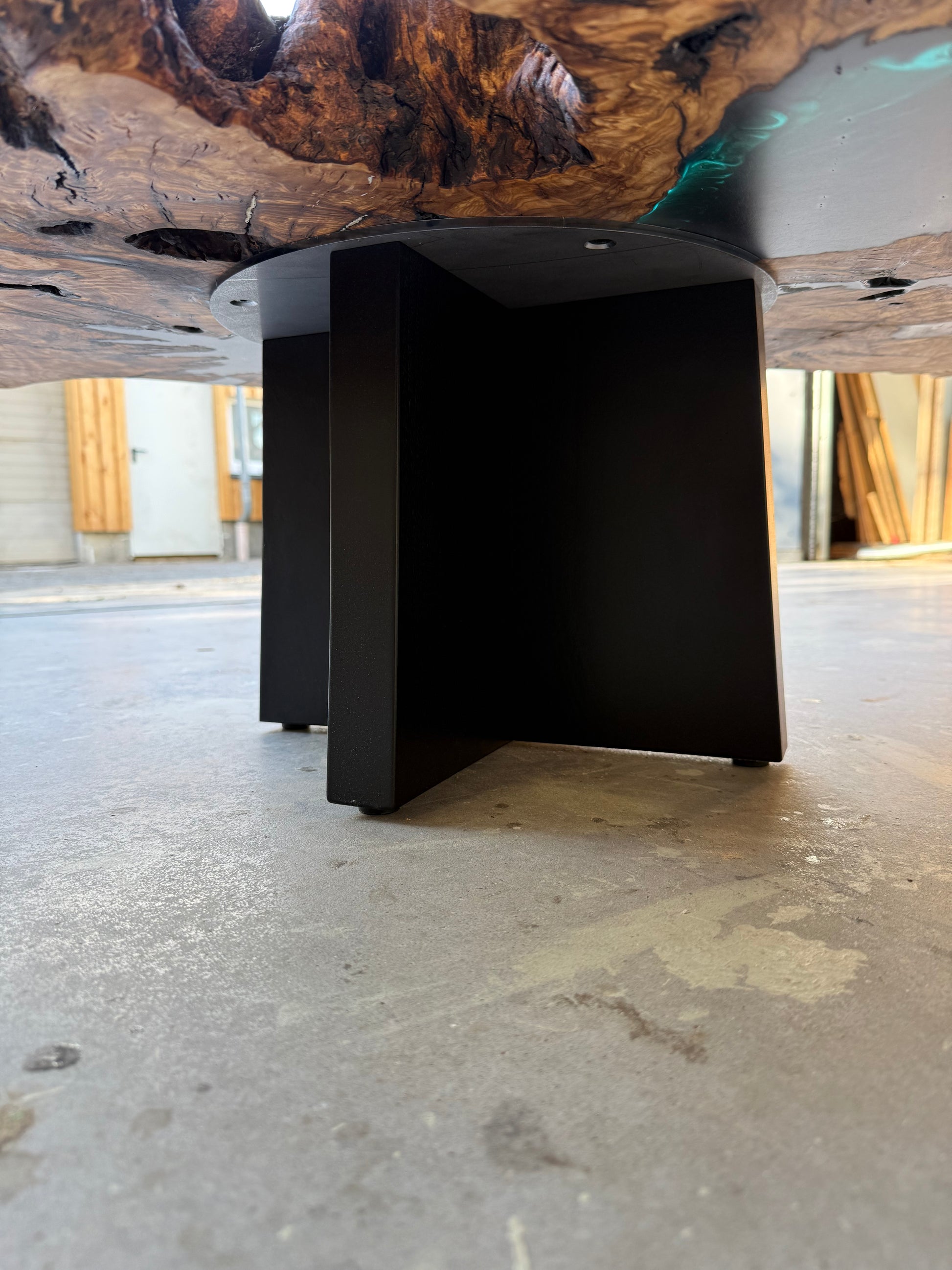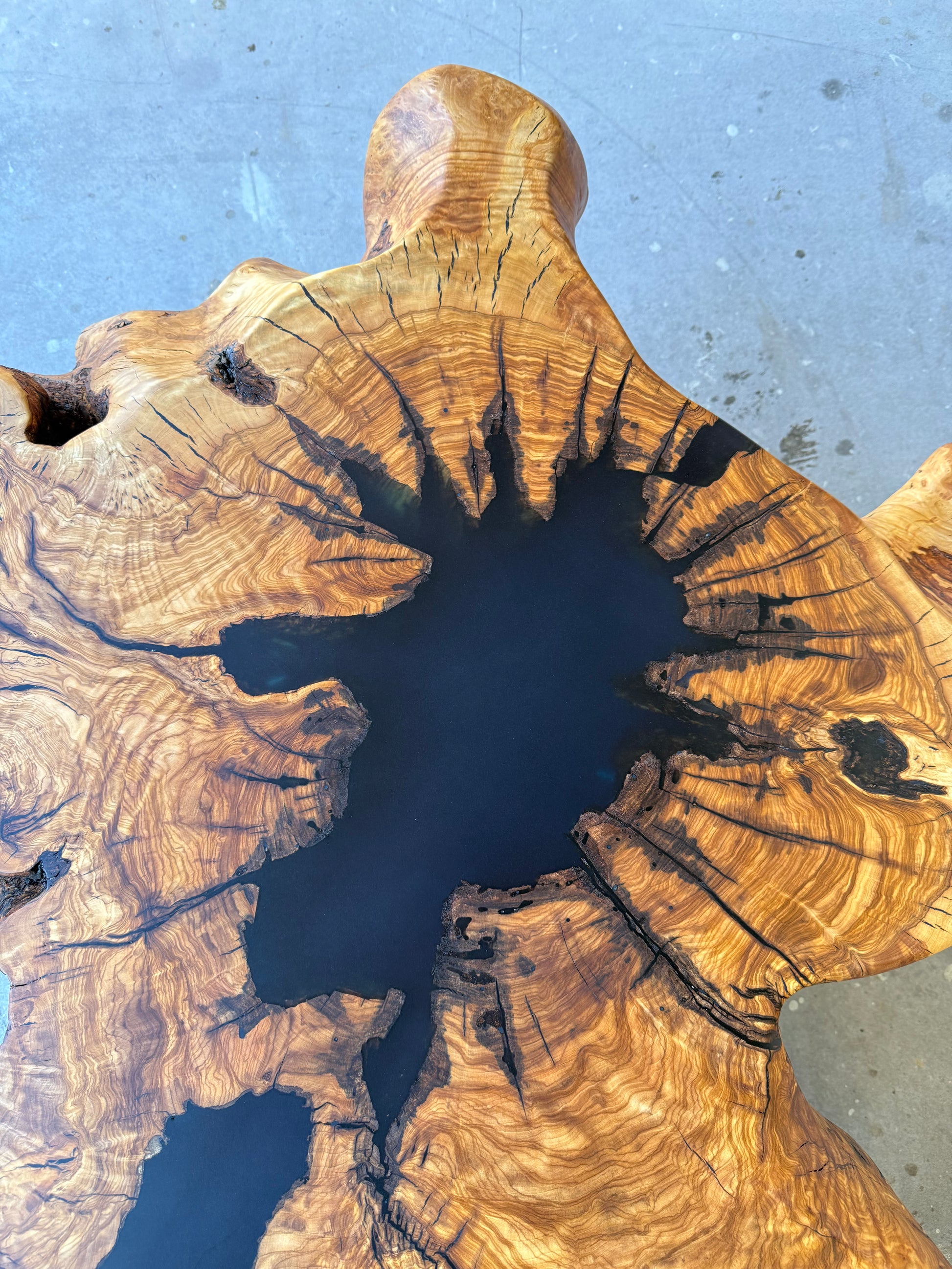 Wurzelholztisch - Olivenholzscheibe kombiniert mit Epoxidharz